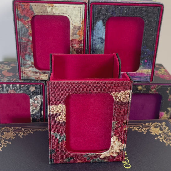 Red Chinese Style Crane & Peony Deck Box - Premium Storage for TCG, EDH, Commander, Dice & Counters