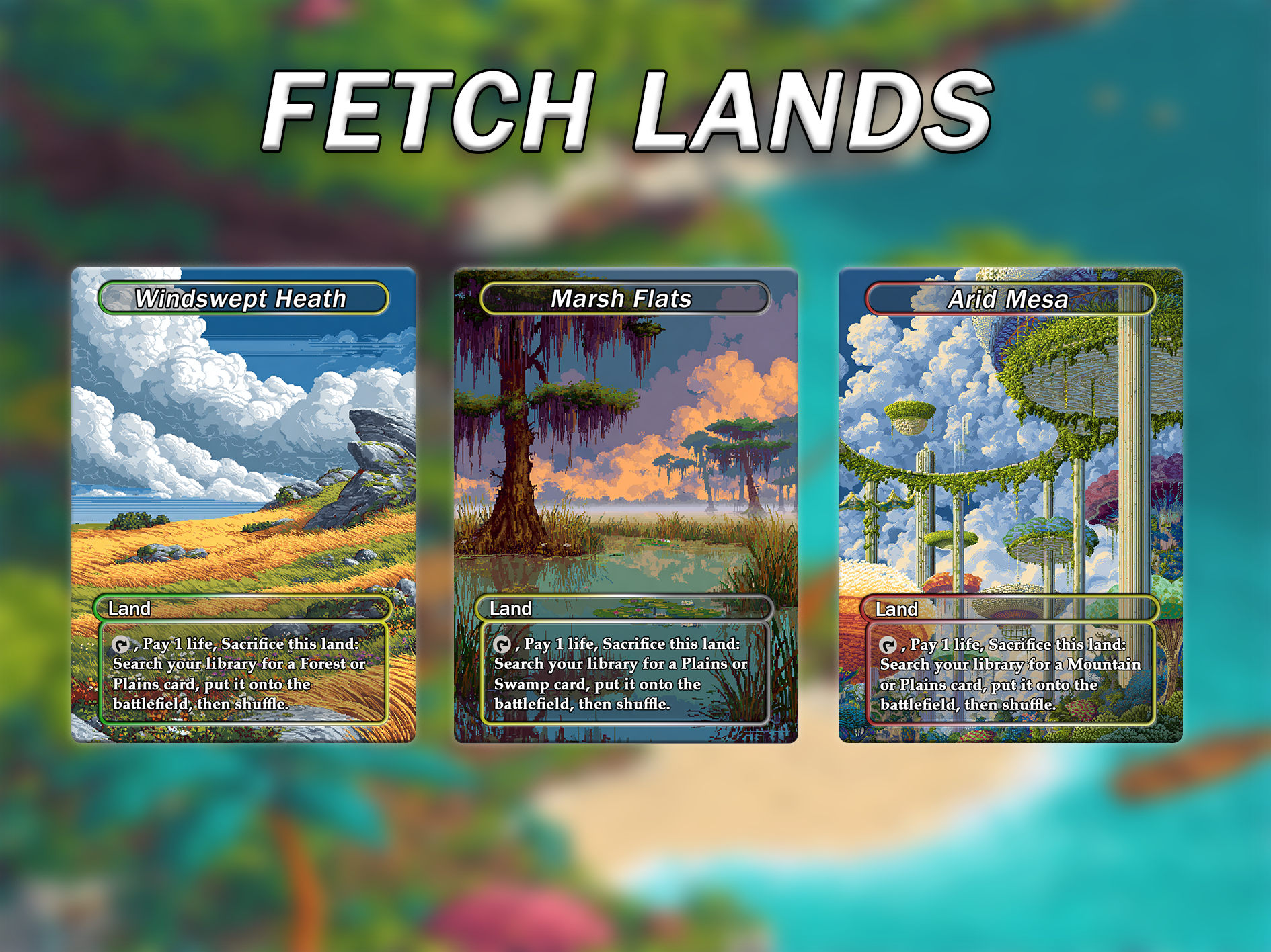Fantasy Pixel Art Style Fetch Land Pack - 10 Unique Borderless Custom Proxy Lands, High-Quality for EDH & cEDH