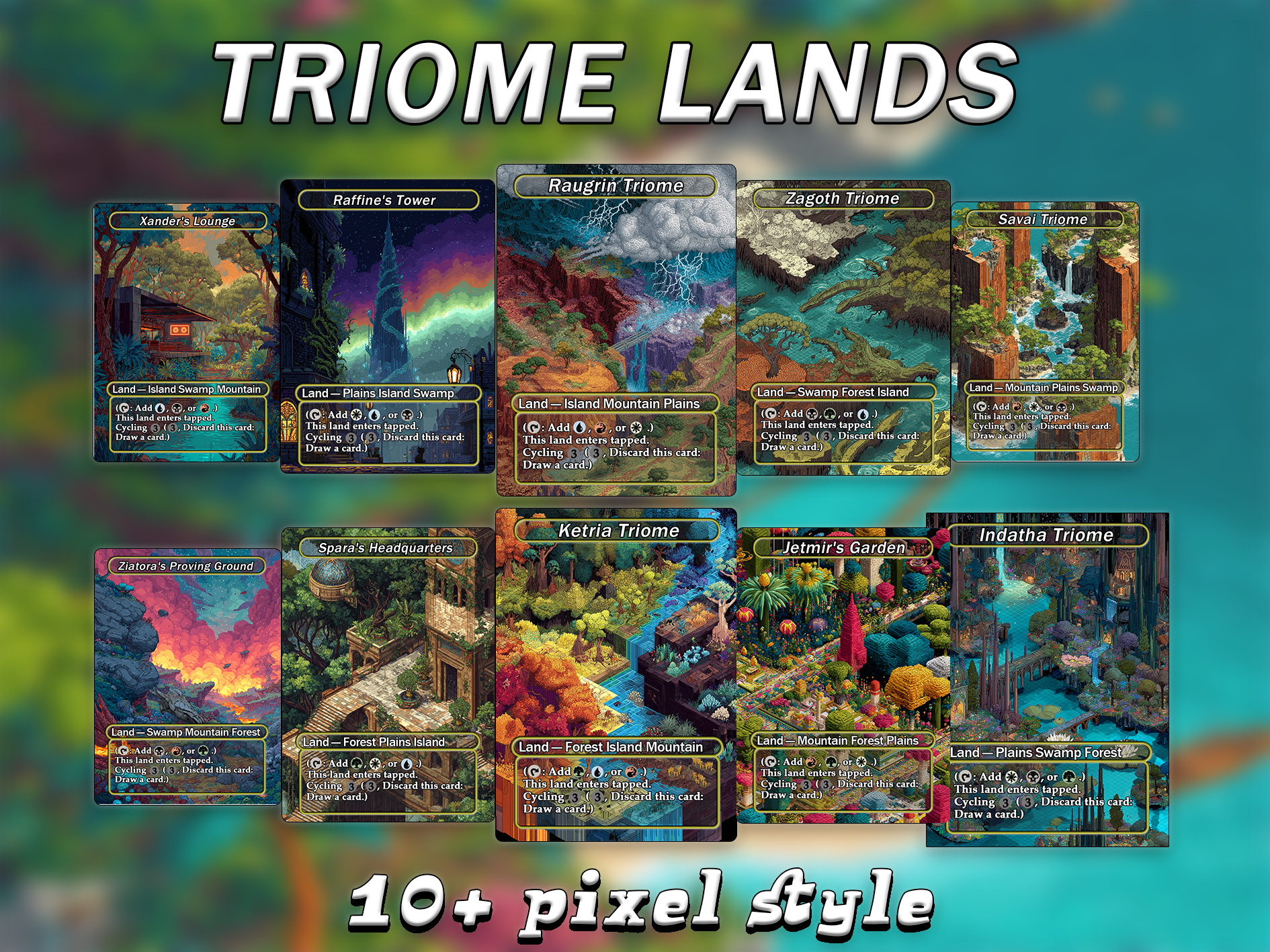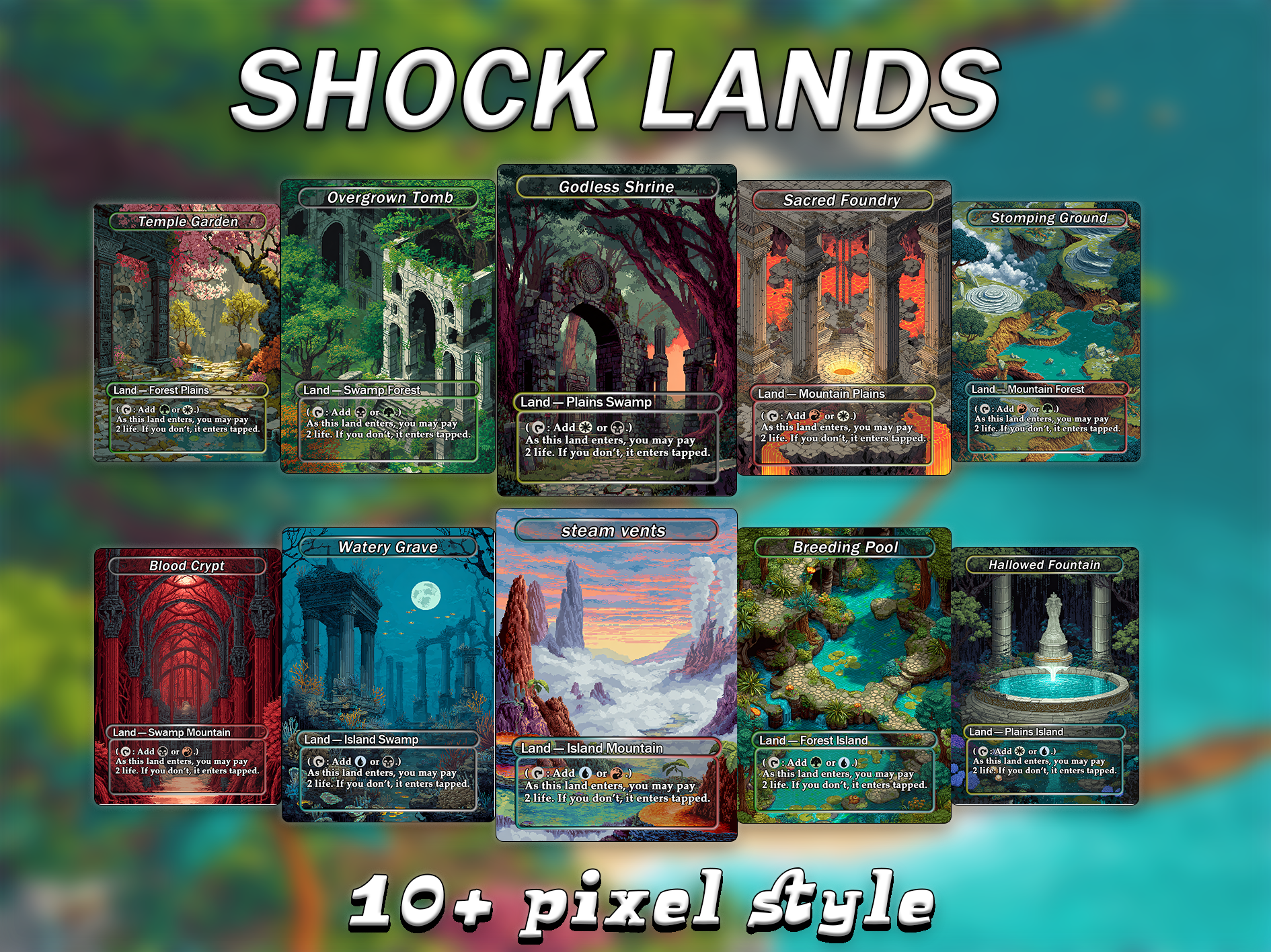 Mega EDH Land Pack – 50 Unique Borderless Custom Proxy Lands in Fantasy Pixel Art Style, High-Quality for EDH & cEDH